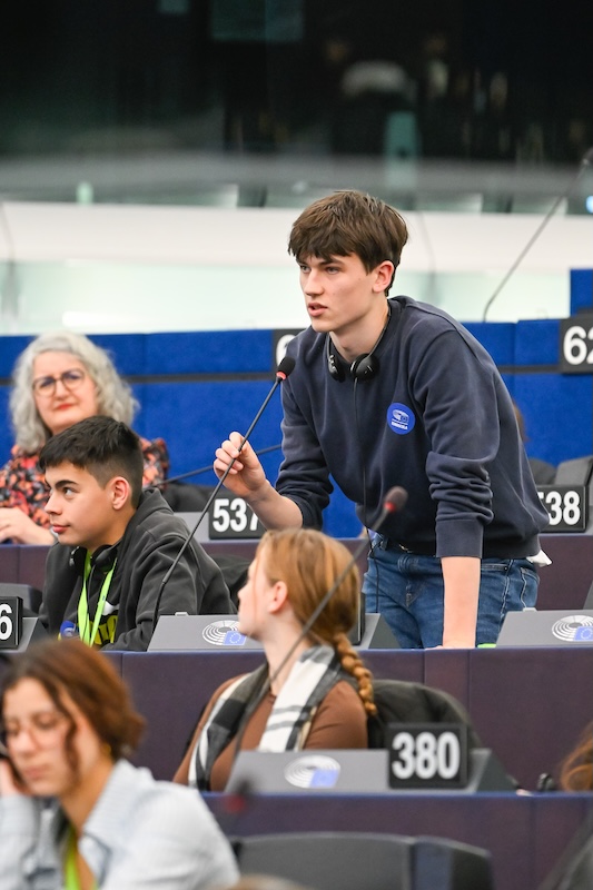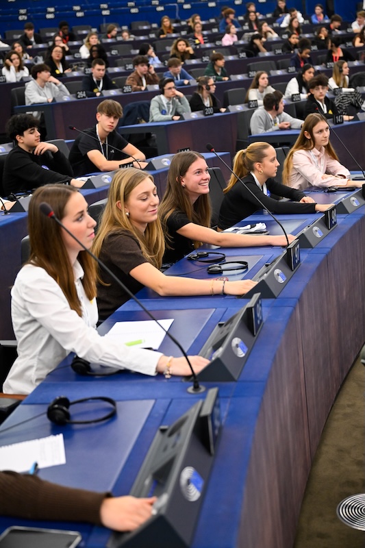 Eröffnet wurde die Veranstaltung mit einer Videobotschaft von Parlamentspräsidentin Roberta Metsola, die das Engagement junger Menschen für die Zukunft Europas hervorhob. Daran schloss sich ein Interview mit der französischen Europaabgeordneten Fabienne Keller an. Die Schülerinnen und Schüler nutzten die Gelegenheit, Fragen zur Zukunft der EU, zur europäischen Klimapolitik sowie zum Umgang mit populistischen Strömungen zu stellen.