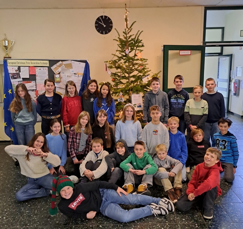 In der Pausenhalle des Gymnasiums Hechingen steht in diesem Jahr ein ganz besonderer Weihnachtsbaum. Er ist nicht nur mit Lichtern und Kugeln geschmückt, sondern auch mit einer Botschaft der europäischen Verbundenheit. Die Klasse 5d hat erfolgreich am „European Christmas Tree Decoration Exchange“ teilgenommen, einem Projekt, das Schulen in ganz Europa näher zusammenbringt.