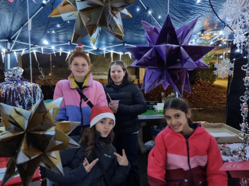 Bereits während der Woche hatten die Vorbereitungen im Schulgebäude begonnen. Weihnachtsbäume wurden aufgestellt, mit Weihnachtsschmuck aus ganz Europa dekoriert und mit Lichterketten versehen. In zahlreichen Regalen und Schränken ließen sich schon die ersten gebastelten oder gebackenen Kostbarkeiten entdecken, die geduldig auf ihren Auftritt beim Verkaufsstand warteten.