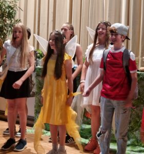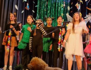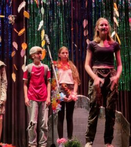 Optisch setzte das Musical ebenfalls starke Akzente: Das farbenfrohe, glitzernde Bühnenbild, gestaltet von den Klassen 6d und 6e unter Anleitung von Cindy Reiber, brachte echtes Urwald-Feeling ins Museum. Die fantasievollen Kostüme – von exotischen Blumen über wilde Tiere bis hin zu bunten Elfen – unterstrichen die Magie der Geschichte und ließen keine Langeweile aufkommen.